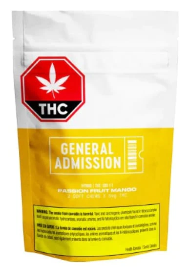 Two-pack of passionfruit-mango flavoured soft chews with a 1:1 THC:CBG ratio.