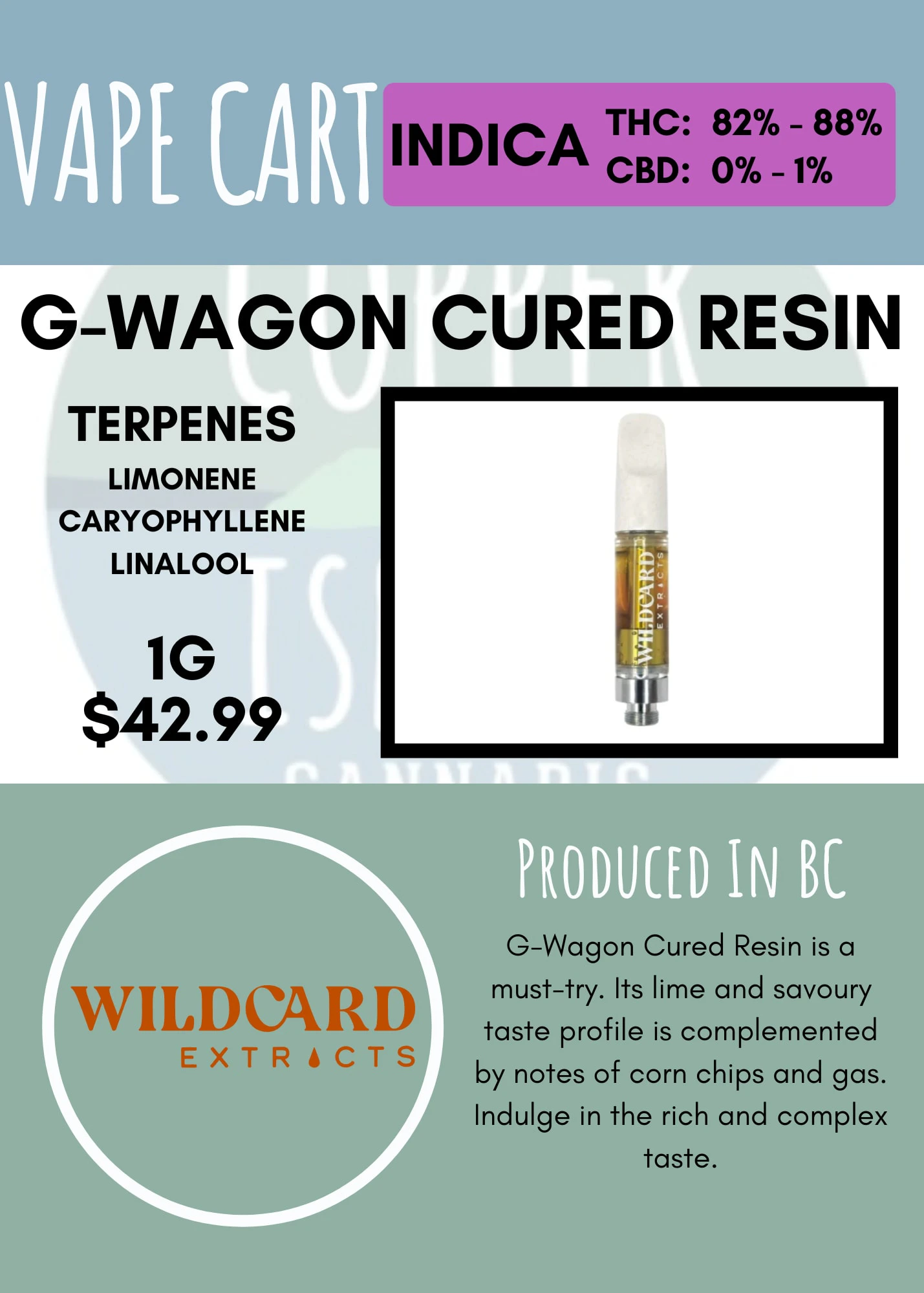 G-Wagon Cured Resin is a must-try. Its lime and savoury taste profile is complemented by notes of corn chips and gas. Indulge in the rich and complex taste.